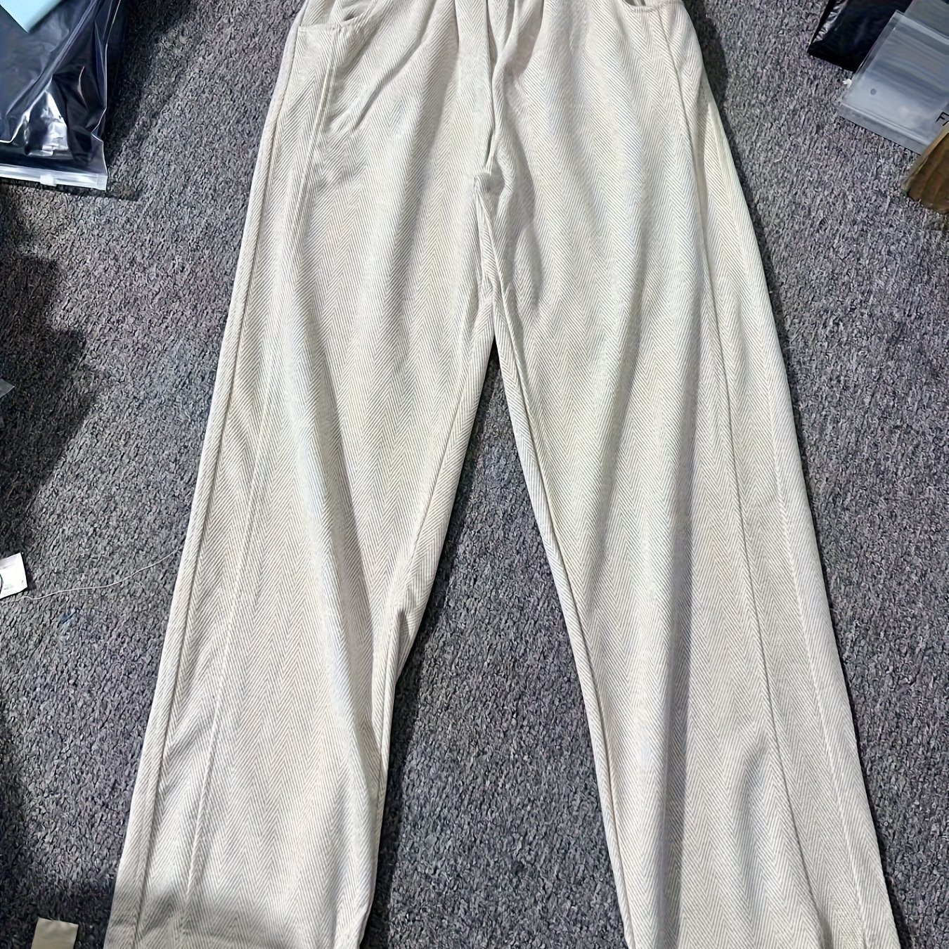 TEMU 여성용 와이드 레그 바지 - 하이웨이스트 와이드 레그 팬츠, 사선 오프닝 & 수직 커프, 베이지 올시즌 캐주얼 & 포멀 웨어, 세탁기 사용 가능 (드라이클리닝 금지) - 바나나 팬츠