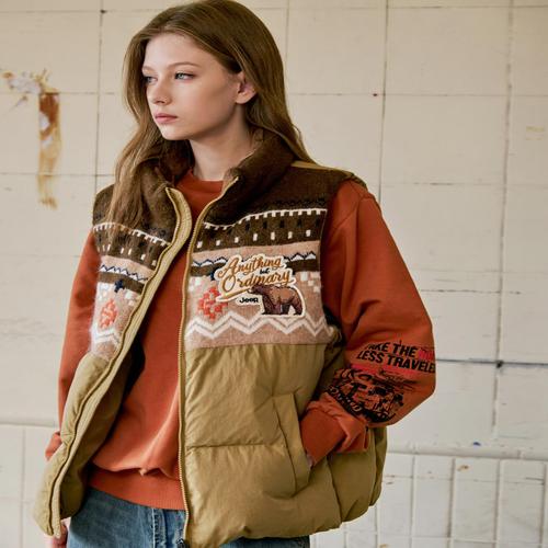 [지프](공용) 브라운 베어 노르딕 니트 덕다운 베스트 JQ4JPU605_BP