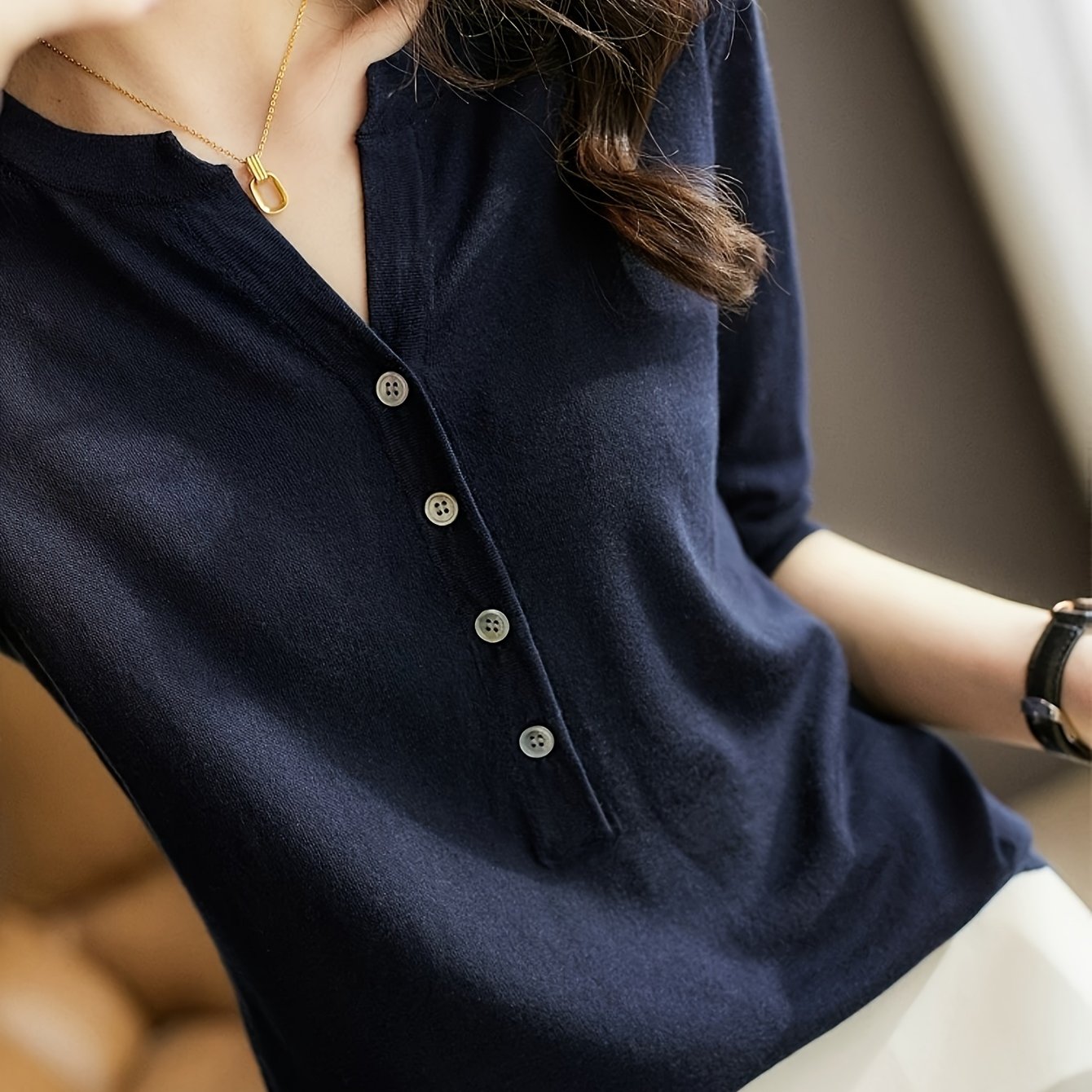 TEMU 여성용 단색 V넥 블라우스