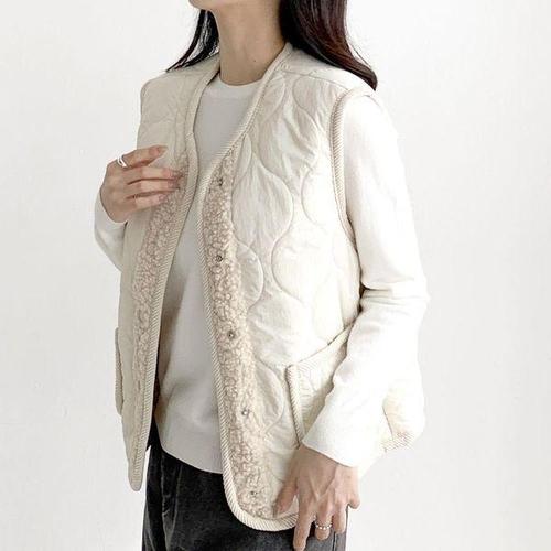 [옷자락]여자 뽀글이 물결 퀼팅 포켓 베이직핏 겨울 양털 조끼