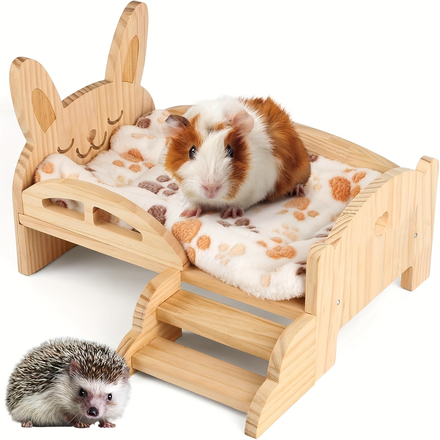 TEMU 나무 침대, 계단, 아늑한 작은 동물 쿠션 침대, 분리 가능한 작은 애완 동물 집, 기니 토끼, 치즈, 햄스터, 페럿을 위한 거주지