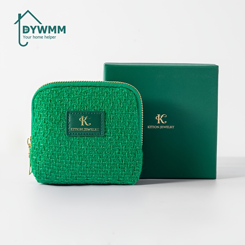 TEMU DWMM 우아한 짠 메이크업 백 지퍼 & 정리 분할기 포함 - 12x12x4cm (4.7x4.7x1.57인치) 여성용 화장품 파우치, 보석 수납, 여행 친화적 디자인, 블루, 그린, 옐로우, 핑크, 메이크업 여행 가방, 스타일리시 액세서리, 내구성 있는 지퍼 클로저|파우치