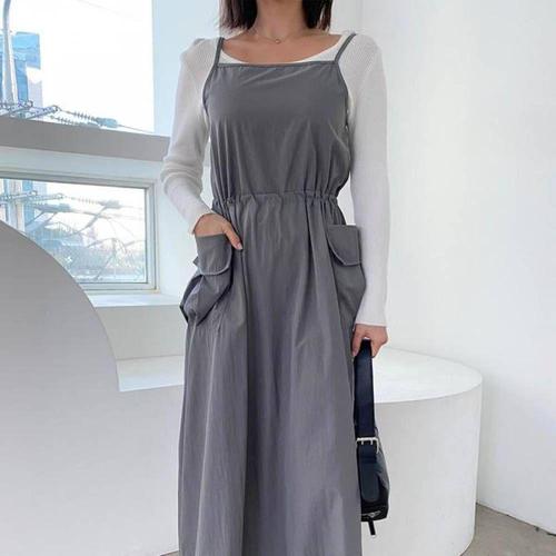 [미라클세븐][M7] 여자 사이드포켓 코디 슬리브리스 끈 원피스