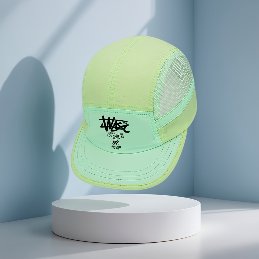 TEMU 새로운 일본 스타일 파이브패널 야구 모자, 아웃도어 스포츠 통기성 짧은 챙 남녀공용 야구 모자