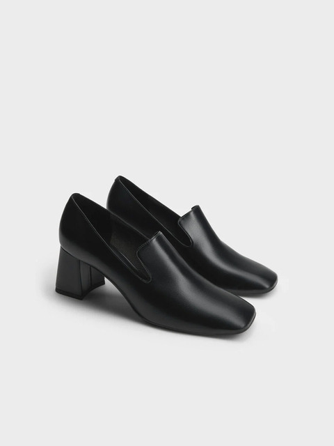 [찰스앤키스] 스퀘어 토 블록 힐 로퍼 펌프스