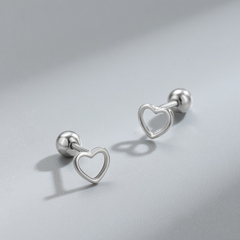 TEMU 스크류 백 하트 스터드 귀걸이, 925 실버, 디자인, 홀로우 하트 참, 트렌디 여성 주얼리