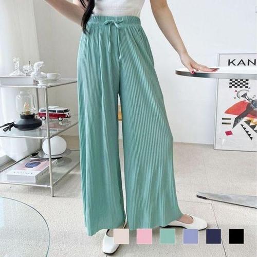 [에이치플러스몰]여성 플리츠 쿨링 와이드 팬츠 1P 찰랑 밴딩 바지