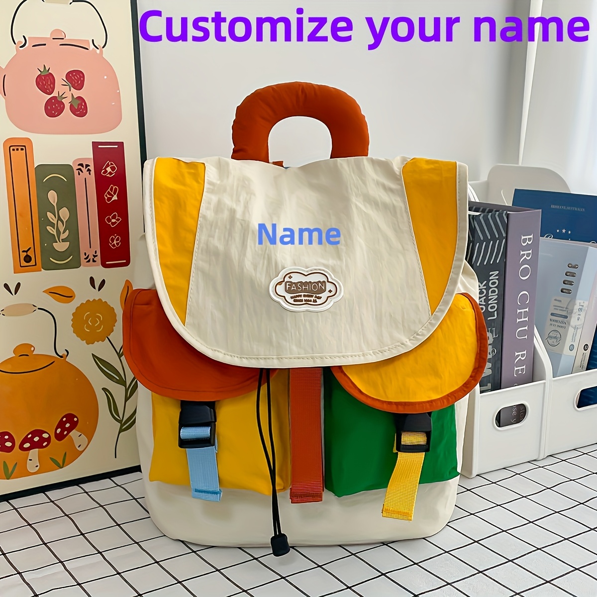 TEMU 맞춤형 자수 캐주얼 백팩 - 개인화된 이름 대용량 방범 도파민 컬러 블록 패션 휴대용 숄더백 사이드 포켓, 일상 출퇴근 여행 쇼핑 할로윈 크리스마스 발렌타인데이 선물, 백팩 지갑, 대용량 여행 백팩, 고품질 여성용 백팩, 미니 여성용 백팩, 기내용 수하물 가방, 트렌디한 핸드백, 튼튼한 숄더 스트랩, 안감, 크로스바디 백, 여성용 액세서리