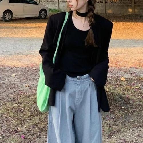 [엄지척]여성 캐주얼룩 데이트룩 오피스룩 머플러 노카라 자켓_20361951_667501