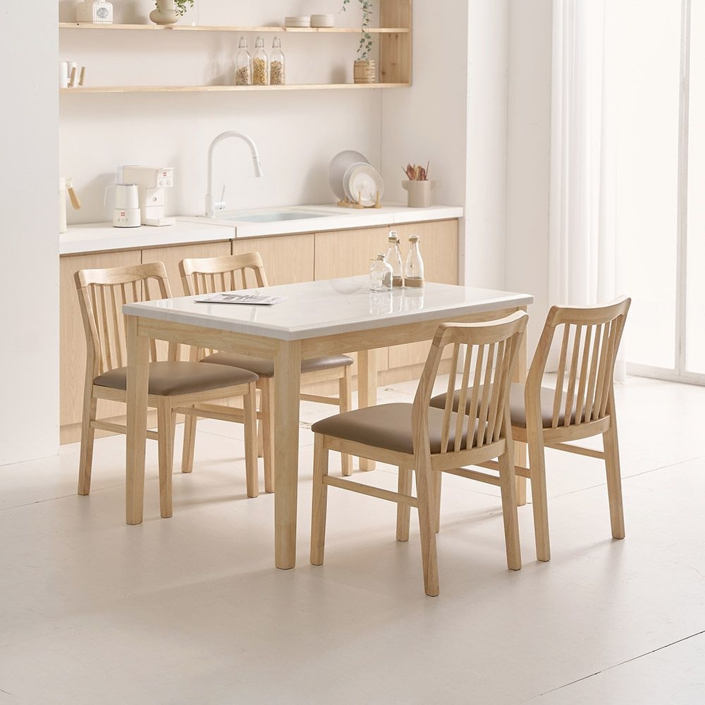 디어 1200 천연 대리석 4인 원목 식탁 세트 (식탁+의자4)