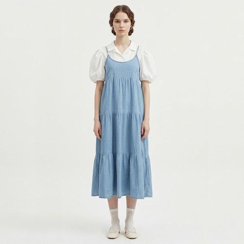 여성 끈나시 3단 캉캉 데님 청 롱원피스 MSE-WDR-21185-연청