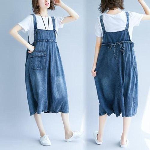 F42595 루즈핏 등조임 롱멜빵청원피스 롱데님원피스 WFL8DIB