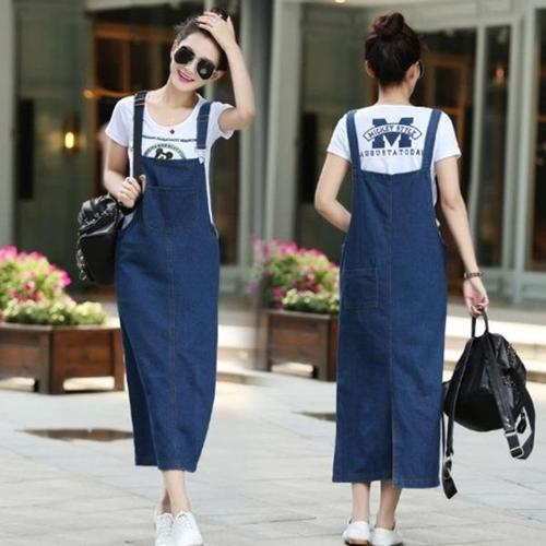 [엄지척]여성 캐주얼 귀여운 포켓 멜빵 청치마 데님 롱원피스_19951752_667501