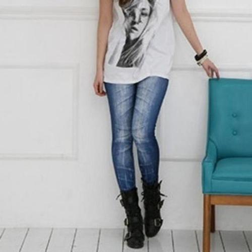 스판 소재 여성용 신축 레깅스 청바지 스타일