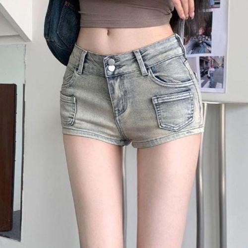 청 반바지 여름 4부 5부 와이드 데님 지퍼 달린 핫팬츠 팔길이 노출 미니 소형 야외 활동 여성 슈퍼 로우