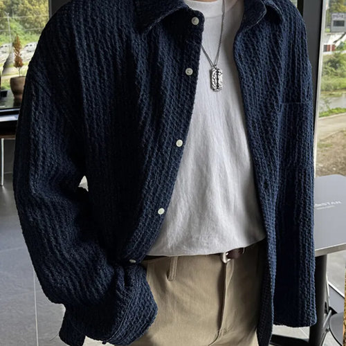 남자 남성 고퀄리티 루즈 오버핏 입체 포켓 청 데님 긴팔 남방 셔츠