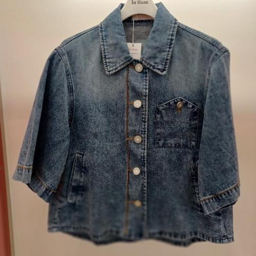 [라티움]Latium HC06 데님 7부소매 레트바이 언발 반팔 카라 점퍼형 연청 쟈켓 T2523jk01 (32512739)