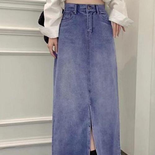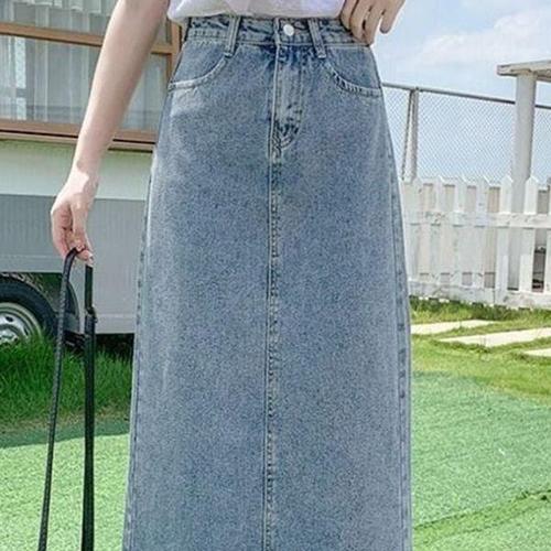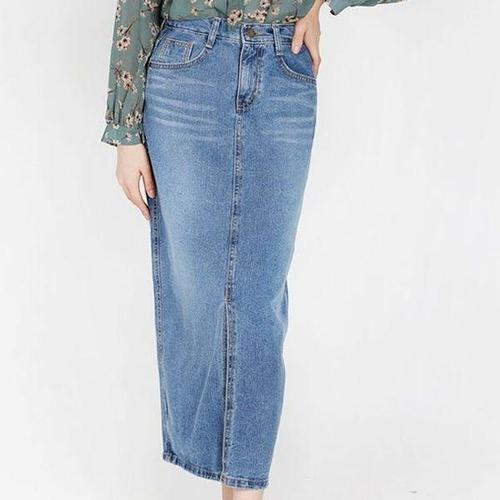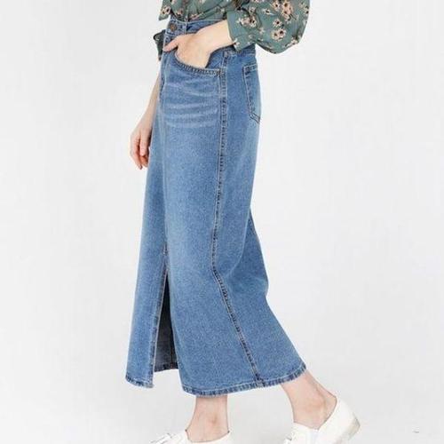 여성 청치마 뒷트임 롱 데님 스커트 데일리 패션 웨어