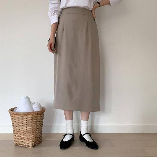 [에이치플러스몰]베이직 새틴스커트 롱 스커트 청치마 롱스커트