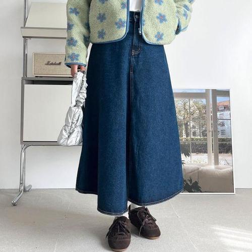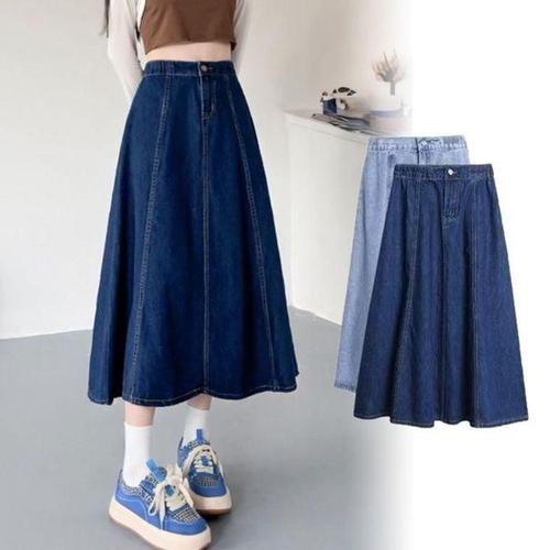 [다잇템]여자 에이라인 데님스커트 백밴딩 롱스커트