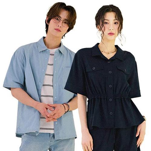 [PIGC] 남성 소매 우븐 포켓 반집업 티셔츠 네이비 (SFC140349)