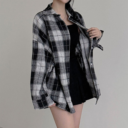 [블랙퀸] 플레드 체크 롱 셔츠 blk004045