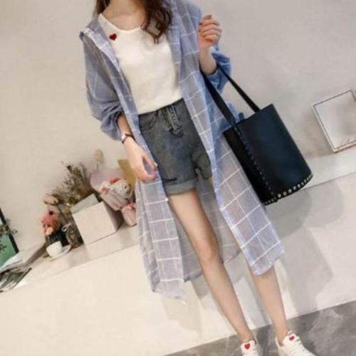 난닝구 여성용 루더스 체크 후드 롱 남방