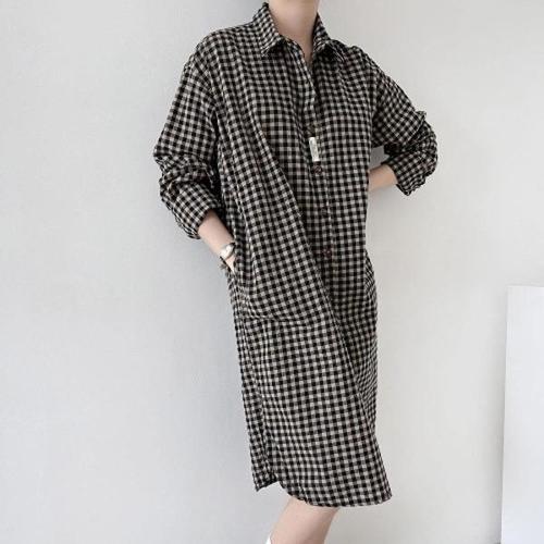 [다잇템_패션]여자 드레스 주머니 롱남방 깅엄체크 FW 셔츠
