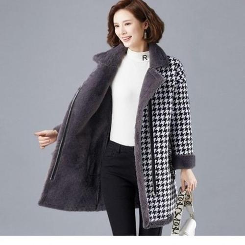 퍼 자켓 체크 모직 퍼안감 코트