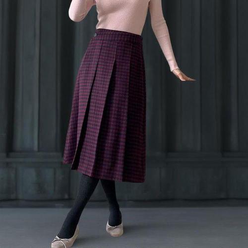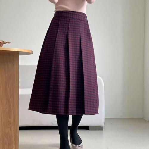 [신상오픈런]여성 연말 스타일 플리츠 체크 롱스커트 빅사이즈 랩 스커트