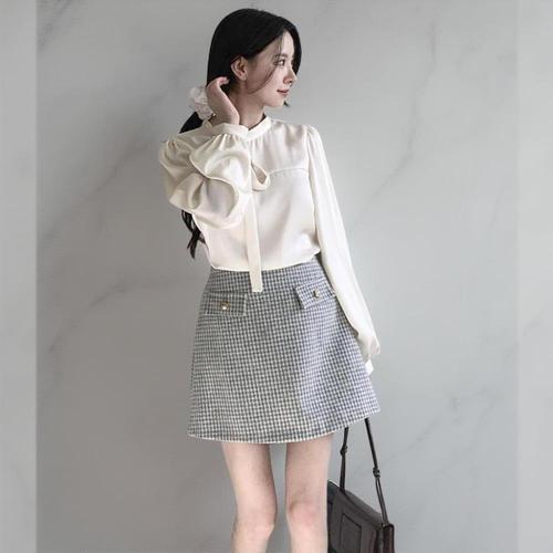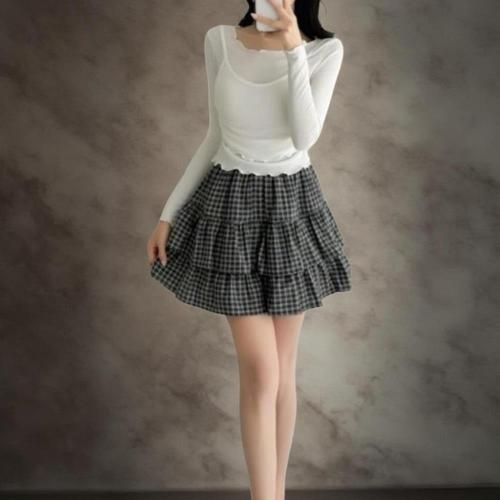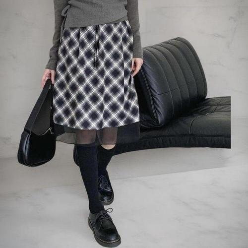 [옷자락] 여성 키치무드 체크 쉬폰 레이어드 미니스커트