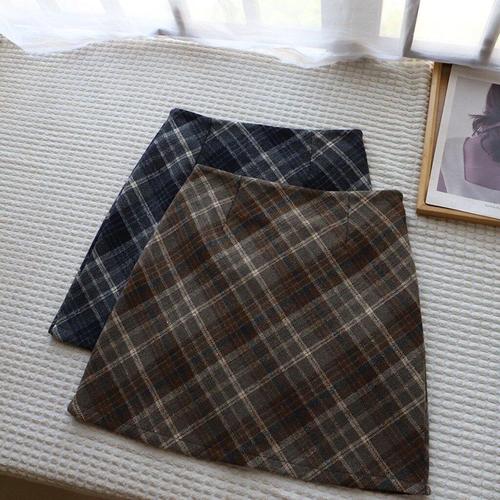 [옷자락]여성 클래식 하운드체크 버튼 울혼합 미니 치마