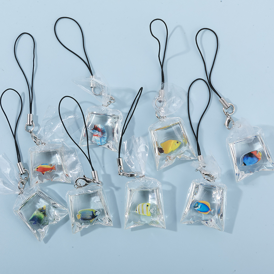TEMU 랜덤 귀여운 폰 참 랜야드 8개 세트, 창의적인 금붕어 물방울 모바일 폰 체인 케이스 펜던트 백팩 장식 액세서리 선물