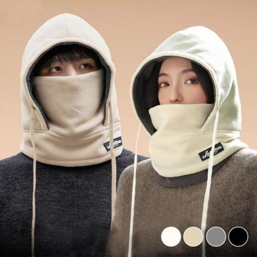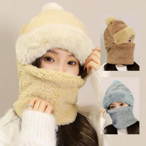 TEMU 여성용 플러시 겨울 마스크 모자 & 스카프 - 조절 가능한 끈이 있는 원피스 얼굴 커버, 스키, 사이클링, 야외 스포츠용 탄력 있는 얼굴 커버 - 가벼운 따뜻한 베이지/화이트 후드 넥 워머 (손세탁 전용)