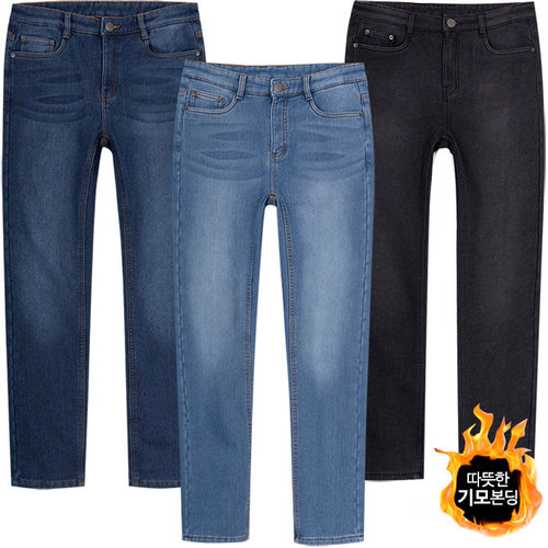 데님 워싱 스트레이트 기모본딩 스판 청바지