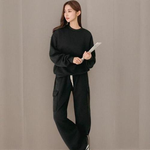 [옷자락]여자 가을 트레이닝 기모맨투맨 카고 밴딩팬츠 세트