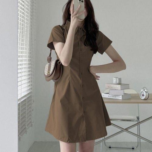 슬림핏 단추 카라 반팔 미니 여성 원피스 WFLIOV1