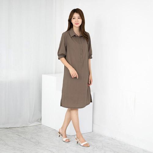 [에이비에프지]카라넥 솔리드 반팔 롱 원피스 APZ5HO88G