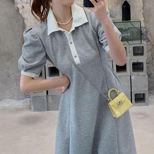 [에이치플러스몰]여자 슬림 미니 스타일 카라 반팔 원피스