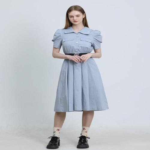 [잇수다] 루샵 포켓 데님 카라 반팔 셔츠 캉캉 롱 원피스