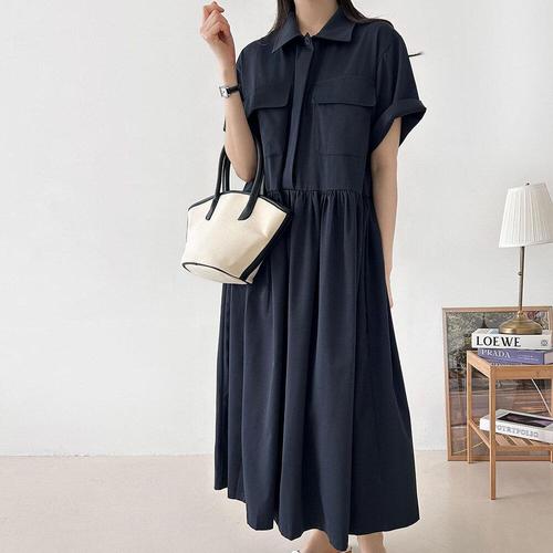 [다잇템]여자 카라넥 여름반팔 더블포켓 롱원피스