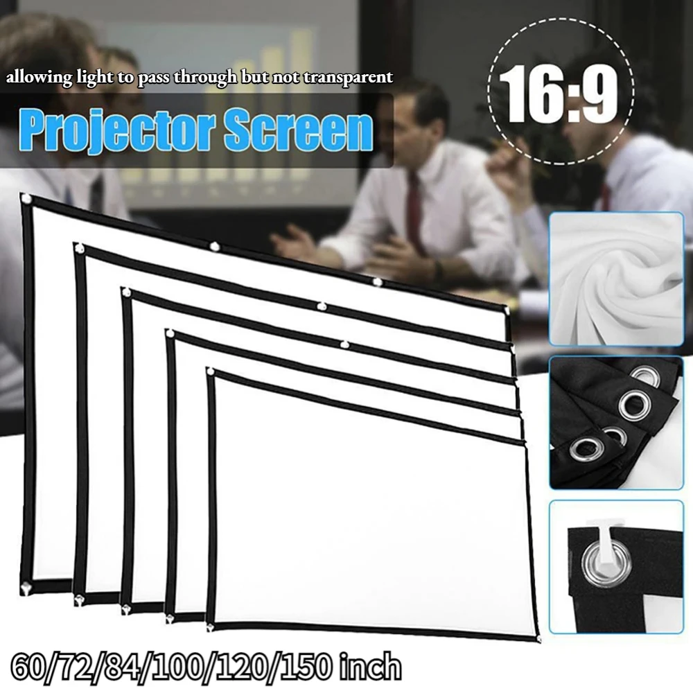 60/72/84/100/120/150 인치 프로젝터 스크린 16:9 홈 시네마 극장 영화 고밀도 야외 캠프 휴대용 프로젝터 스크린
