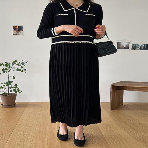 [귈림](귈림) 배색 카라넥 플리츠 니트 원피스(G5FOP052P)