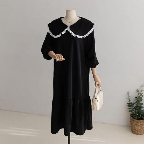 이쁘다요 배색 원피스 블랙 카라 쁘띠 여성 와이드 WFLMEVX