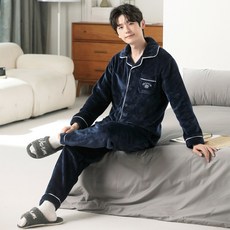 YANGTA 소프트 극세사 카라 수면 잠옷 겨울 남성용 잠옷 상하의 세트