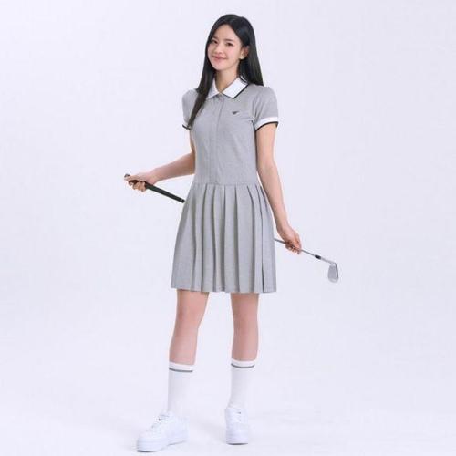 [하프클럽/]골프 여성 배색 포인트 카라 플리츠 반팔 원피스 HUAKD1025