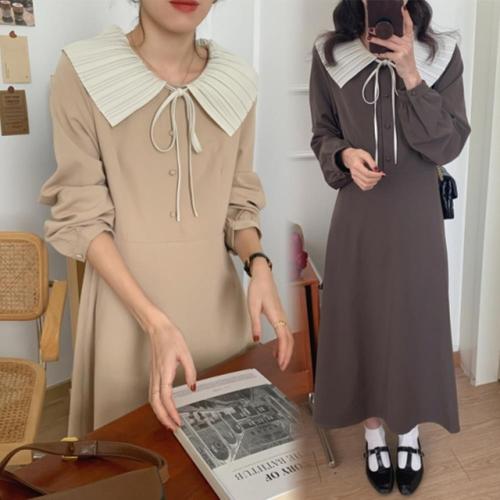 [나크21] A라인 플리츠 카라 롱 원피스 NK31-O-10 /빅사이즈
