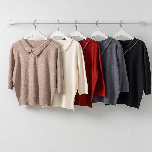 [다잇템]여성 카라 언밸런스 반짝 울레드 큐빅 니트티