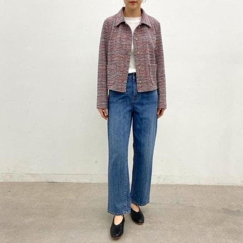 [신상오픈런]|KDJ4F06|이보로 카라 재킷 검정 면 여성 스프링 레드 트위드_18178133_597559