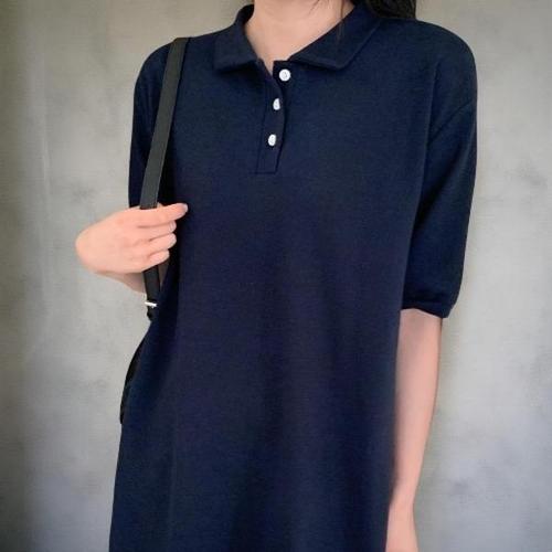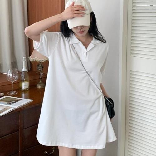 [다잇템][다잇템] 여자 카라넥 캐쥬얼 쁘띠 반소매 박시핏 면혼방 원피스_21258074_588872